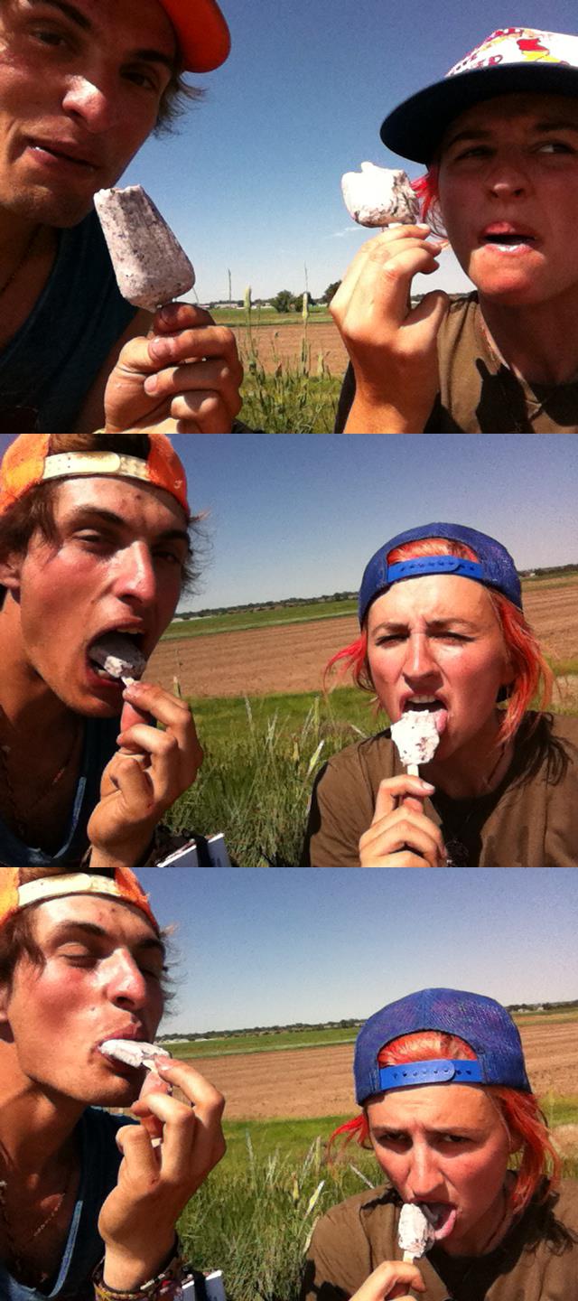 Our last driver of the day had dropped us off at a place in Nebraska called Kimball, telling us that we’d get a ride from there in no time. We walked up to the highway and discovered orange roadwork pylons as far as the eye could see in both directions— no shoulders to speak of anywhere.