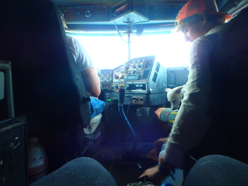 When our ride came by, we didn’t even try to flag him down. He was just another trucker, after all. He just stopped, hopped out, and pointed to his truck. We weren’t even half convinced that he’d actually stopped for us, but at that point we’d been stuck in Kimball for 14 hours, so we grabbed our packs and jogged over to check it out.