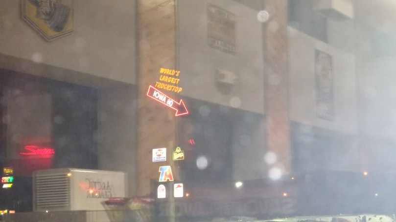 The next thing I knew, it was 3am and we were being told that the driver needed a nap and that we were at the World’s Largest Truck Stop. We were turned loose, agreeing to go find a place to pitch our tent and return at 6am to travel the rest of the way to Chicago. We never put our tent anywhere, though, because we were at THE WORLD’S LARGEST TRUCK STOP