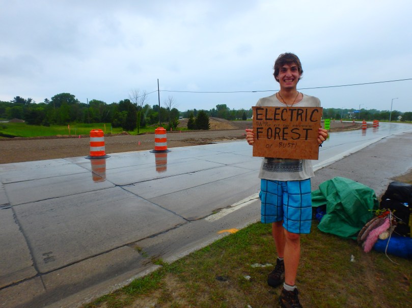 We got a ride with a nice guy who’d always wanted to pick up hitch hikers but was always worried that he’d get murdered if he did. He was just a little offended when we mentioned that we were looking forward to making fun of everyone who didn’t ever camp trying to camp at the festival. We ended up forgetting our tarp in his car, so I hope he takes good care of it.