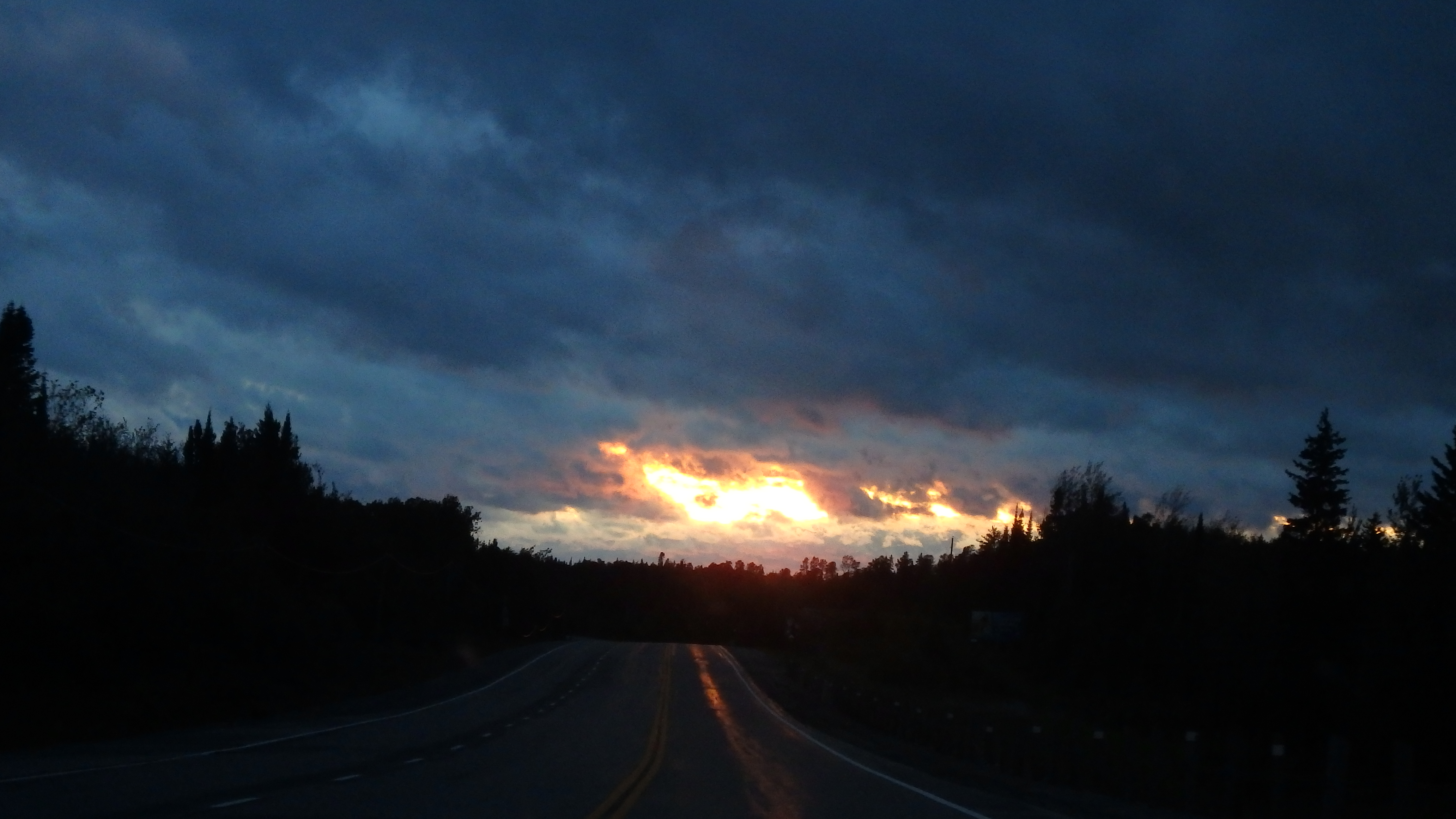 The next day picked up its pace. We got a ride straight to Sudbury from a guy who had recently put a spike through his foot, then a series of short rides west with relatively short wait times. Still, it’s hard to make a 40 hour drive in 20 minute segments. On top of that, there was a heat warning out for the area. It would have been a lot worse, but a bunch of people were kind enough to bring us fresh cold bottles of water. The day continued that way until we reached Blind River, and after the longest wait of the day we were picked up by Kyle: a young teacher, bound for Thunder Bay.
