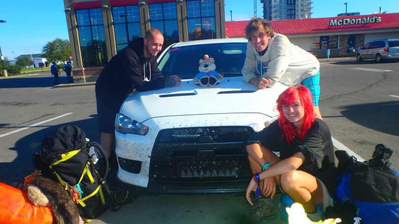 Paul was just about the best ride we could have hoped for. Not only was he going far… He was going fast: doing a solid 150 kph the entire way. During our endless hours together, we ate at a sleazy tavern, stayed in a sleazy motel room, and learned each other’s coffee orders inside and out. Paul is a welder/ heavy metal drummer with a really cool car and a teddy bear that his mom had given him as a companion for the trip. He was very different from us in a lot of ways, but we got along really well. If anything, our differences only made the conversation more interesting.